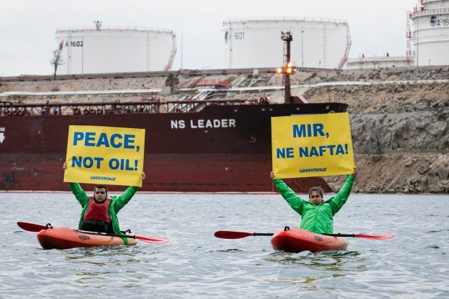 U srijedu ujutro kajaktivisti Greenpeacea istaknuli su poruku „MIR, NE NAFTA“ u blizini tankera “NS Leader ” koji je na JANAF-ov Terminal u Omišlju na Krku dovezao naftu iz Rusije. Ístovremeno, kod Omišlja je usidren tanker “Primorsky Prospect ” koji je pak u utorak završio istovar nafte iz Rusije na JANAF-ovom terminalu.
