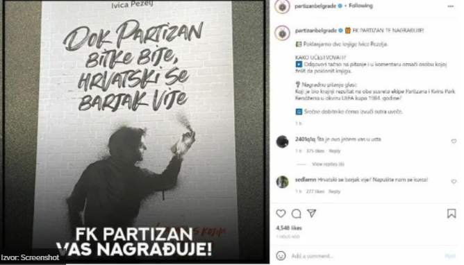 Neobičnu nagradnu igru pokrenuo je nogometni klub Partizan. Na društvenim je mrežama objavio da će sretne dobitnike nagraditi knjigom “Dok Partizan bitke bije, hrvatski se barjak vije“.