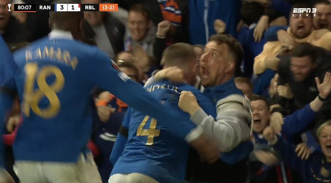 Rangersi opet vode protiv, a do kraja je desetak minuta. Kent je ponovno pokazao kako opasan može biti. Ubacio je s lijeve strane, Gulasci je loše reagirao na način da se pokušao baciti i izbiti loptu. U tome nije uspio, već je Gvardiol s crte spasio Leipzig. No pokazalo se da je samo za trenutak spriječio gol jer je Lundstram odbijenu loptu zakucao u nebranjenu mrežu. Rangersi ovim rezultatom idu u finale.