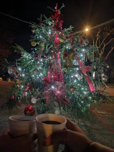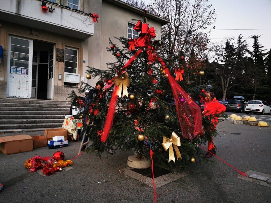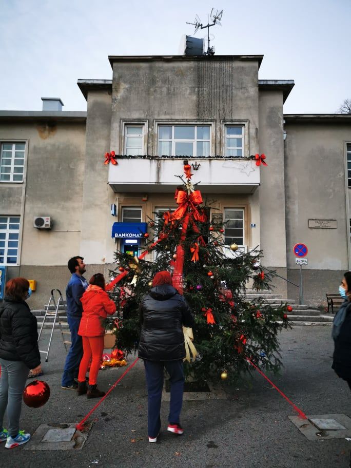 Za tili čas skupilo nas se 7 ili 8, odjednom se stvorio stol i zvučnici. Gledaš i ne vjeruješ. Krenule Božićne i kićenje je ušlo u ritam. Odjednom te zapahne miris kuhanog vina i okreneš se opet, a ono kuhalo na stolu i vino, cimet, naranče i štošta još krčka u njemu. Ne možeš vjerovat. Divota. Jednostavno predivno. Jedan ofucani bor je povezao zajednicu i ljude, ima li nešto ljepše.