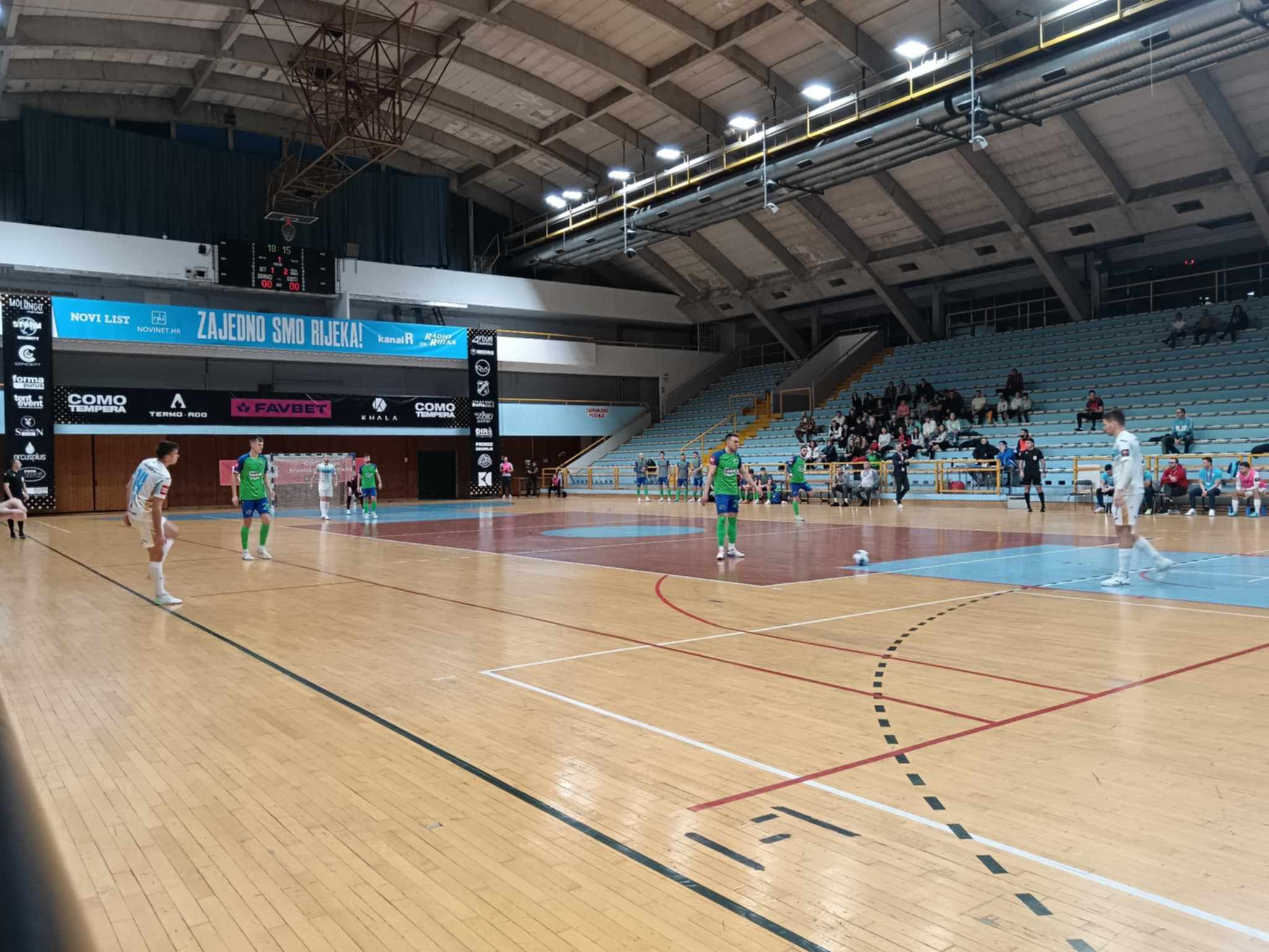 Malonogometna utakmica između HMNK Rijeka i Olmissuma završila je bez pobjednika, rezultatom 3:3. Iako su gosti iz Olmissuma imali prednost, Rijeka se uspjela vratiti u igru. Domaći su golove zabili Luka Suton (4. i 17. minuta) te Žiga Čeh (36. minuta), dok su za Olmissum mrežu tresli Copić (14. minuta), Fetić (15. minuta) i Kustura (24. minuta). Utakmica je bila napeta i uzbudljiva, s puno dinamike i preokreta, a Rijeka je u samom kraju bila bliža pobjedi.