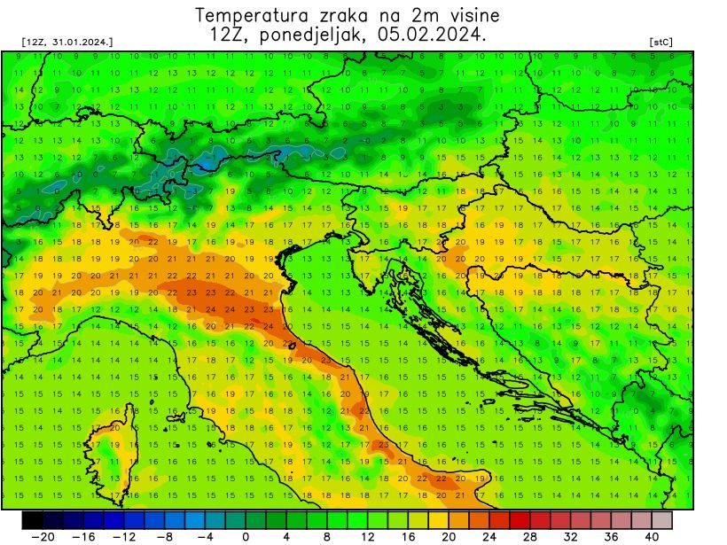 Sjever Italije i Hrvatska suočavaju se s neočekivanim toplinskim valom usred zimske sezone, dok temperature najavljuju moguće iznenađujuće visoke vrijednosti. Meteorološka prognoza, dijeljena od strane Istramet na svom Facebook profilu, sugerira da bi sjever Italije mogao probiti 25 °C, dok će Hrvatska pratiti taj trend s očekivanih 20 °C. Ovaj neobičan meteorološki fenomen dolazi dok ulazimo u veljaču, period koji obično karakterizira vrhunac zimske hladnoće.