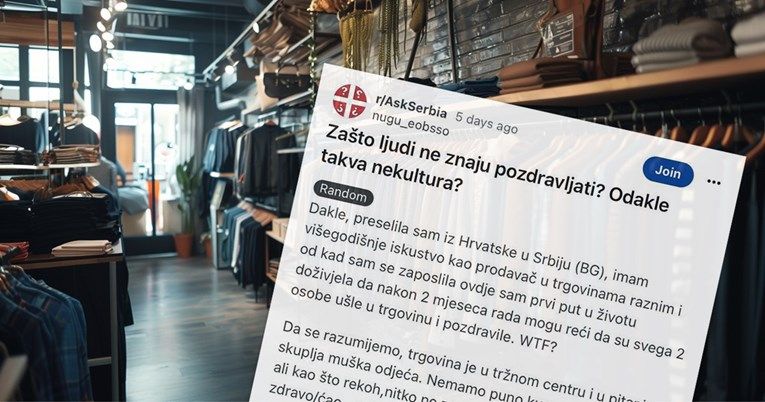Hrvatica koja se preselila u Srbiju požalila se na Redditu na detalj koji je zamijetila otkad živi u toj zemlji, a koji ju je razočarao. Naime, objasnila je kako radi kao prodavačica u jednom dućanu u šoping centru u Beogradu, a zamijetila je kako ju ljudi ne pozdravljaju kad uđu u dućan.