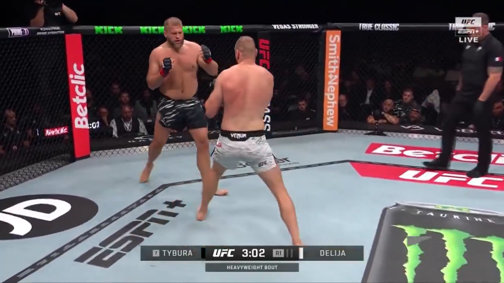 Već nakon 123 sekunde borbe, hrvatski teškaš pogodio je Tyburu razornom kombinacijom koja je Poljaka poslala na pod i donijela Deliji prvu UFC pobjedu.