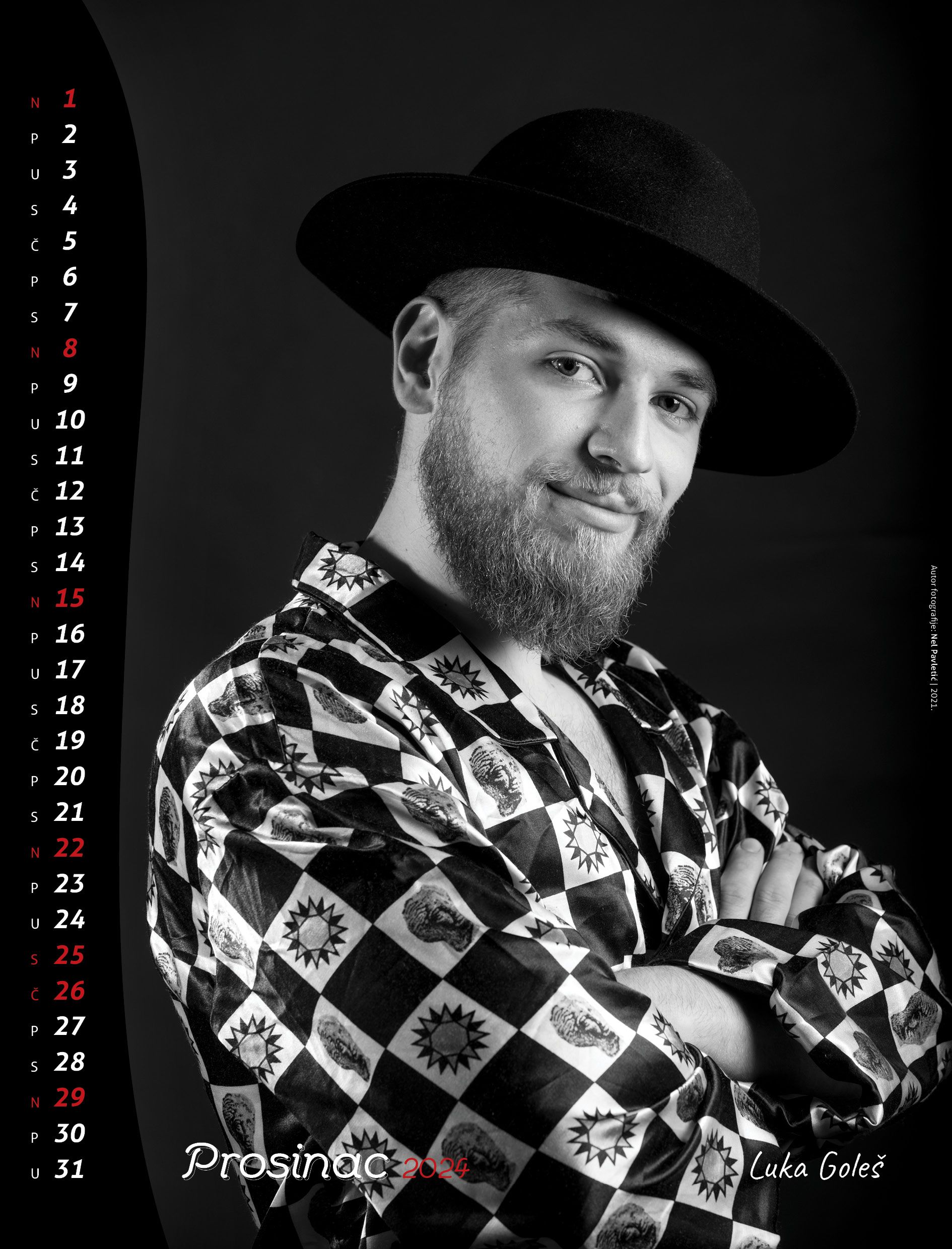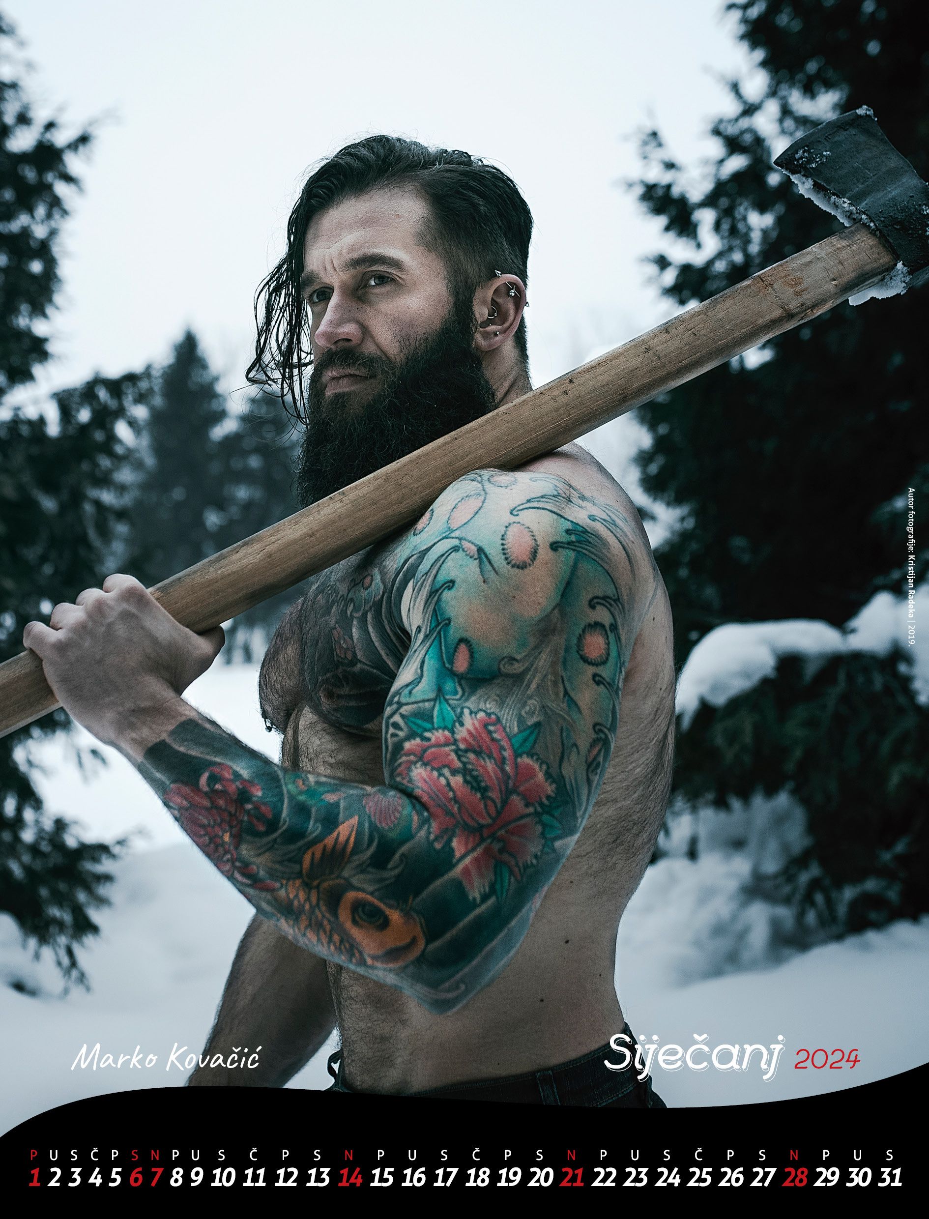 Naslovnicu kalendara “Riječki dečki” za 2024. godinu krasi Damir Marinović Mrle (rekli smo – ova naslovnica mora prodati kalendar), koji se prvi put pojavio u kalendaru 2003. godine, zahvaljujući objektivu Petra Fabijana, kada je tema bila “Kultura i glazba”. U siječnju, okrećemo stranicu na kojoj se nalazi Marko Kovačić, uhvaćen objektivom Kristijana Radeke, a koji je već bio prikazan u kalendaru “Riječki dečki – Tattoo priča” 2019. godine. Fotografija Gorana Ogurlića, snimljena od strane Mare Bratoš, označava “riječkog dečka” za veljaču, a već smo ga vidjeli u kalendaru “Riječki dečki – Zagrebačka adresa” 2010. godine. Egon Hreljanović je autor fotografije na kojoj se pojavljuje Elvio Baccarini, koji će u ožujku 2024. godine zauzeti svoje mjesto, podsjećajući nas da je bio dio kalendara “Riječki dečki – Doktori znanosti” 2005. godine. Rajko Blečić, uhvaćen objektivom Viviane Lokmer Šuline, predstavljen je u travnju, a već smo ga vidjeli u kalendaru “Lučki riječki dečki” 2015. godine. Franjo Jardas, uhvaćen objektivom Damira Fabijanića, bio je prikazan u kalendaru “Riječki dečki – Kuham, dakle jesam” 2009. godine, a ove godine ga gledamo u svibnju. Kalendar “Riječki dečki” za 2016. godinu obilježen je temom “Homo si teć”, a Damir Šegota se tada pojavio u objektivu Sergeja Drechslera. Ove godine ga susrećemo u lipnju. Stephan Lupino je 2013. godine fotografirao “Riječke dečke – Veslače”, uključujući Marka Pogarčića, koji sada krasni srpanj 2024. godine. U kolovozu ćemo okrenuti stranicu s likom Alena Liverića, koji se pojavio u kalendaru “Riječki dečki – Sportski duh” 2002. godine, snimljen od strane Petra Fabijana. “Riječki dečki – Ragbijaši” Sebastijan Mendiković, Edin Haliti i Marko Bjelobaba, uhvaćeni su objektivom Damira Škomrlja 2008. godine, a ove godine gledamo ih u rujnu. Oliver Baljak (zapravo riječ je o glumici Oliveri Baljak koji glumi riječkog dečka) Timmy & Lola, pojavili su se u kalendaru “Riječki dečki – Prijatelji” 2011. godine, snimljeni od strane Rina Gropuzza, a ove godine ih gledamo u listopadu. Fotografkinja Mara Bratoš je 2007. godine fotografirala “Riječke dečke – Branitelje”, a u kalendaru se pojavio i Dražen Zima, koji ove godine krasi mjesec studeni. Naposljetku, kraj 2024. godine obilježit ćemo fotografijom Luke Goleša, koji se pojavio u objektivu Nela Pavletića 2021. godine, kada je tema bila “Riječki dečki – 25-godišnjaci”.
