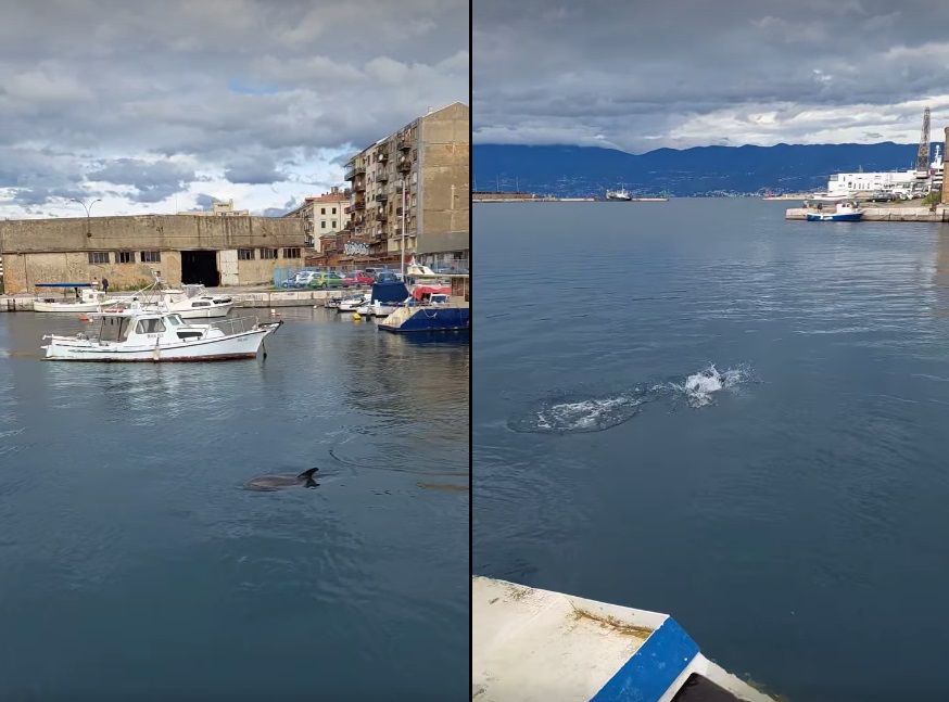 Danas je igra dupina u Porto Barossu u Rijeci privukla nekolicine prolaznika koji su snimili ovu nezaboravnu scenu i objavili na Facebooku.