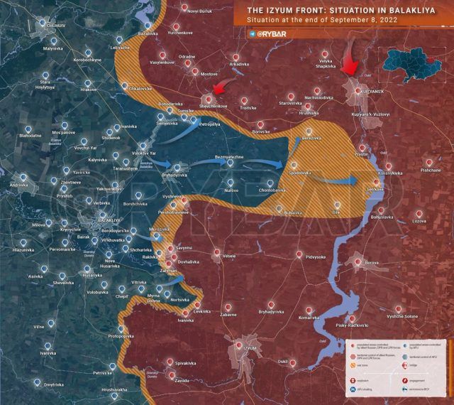 Prema njegovoj posljednjoj procjeni, ukrajinske snage su napredovale 20 km do grada te bi njegovo ponovno zauzimanje značajno pogoršalo komunikaciju između ruskih snaga u regiji.