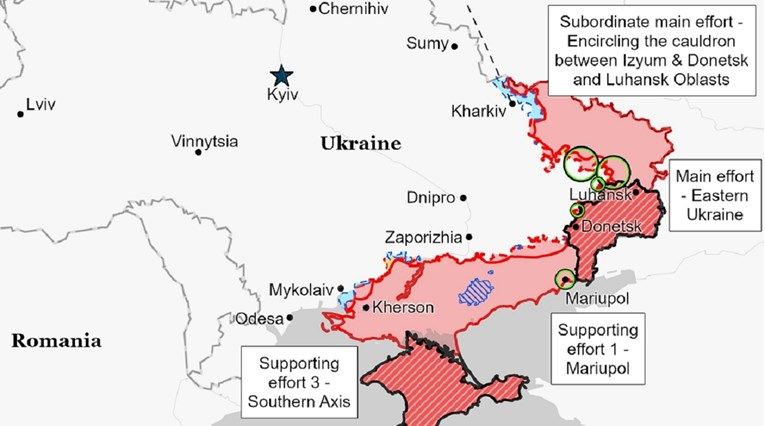 Institut piše da će Ukrajina sada vjerojatno “pokušati poremetiti kopnene komunikacijske linije (GLOC) između Belgoroda u Rusiji i ruskih snaga koncentriranih oko Izjuma”. U međuvremenu, navodi se, glavni ruski napori bili su usmjereni na opkoljavanje gradova Severodonjecka i Lisičanska u Luhansku.