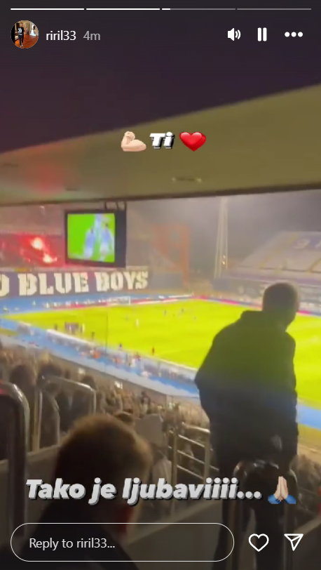 Nakon što je Marko Livaja postigao pogodak, Iris je na svom Instagram profilu podijelila trenutak radosti uz jednostavnu, ali emotivnu poruku: “Ti. Tako je ljubavi” ❤️. U pozadini snimke moglo se čuti uzbuđeno slavlje i povike: “To sineee!” dok se gol vrtio na ekranu, naglašavajući koliko je ovaj trenutak bio poseban za obitelj Livaja i navijače Hajduka.