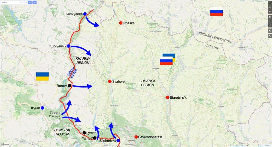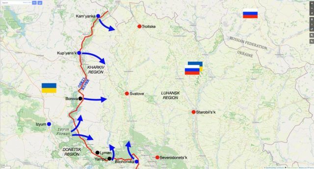 Institut za proučavanje rata (ISW) objavio je podatke koji sugeriraju da ukrajinske snage šire položaje istočno od rijeke Oskil i sjeverno od rijeke Siverskij Donec što bi im moglo omogućiti da okruže ruske trupe koje drže grad Liman.
