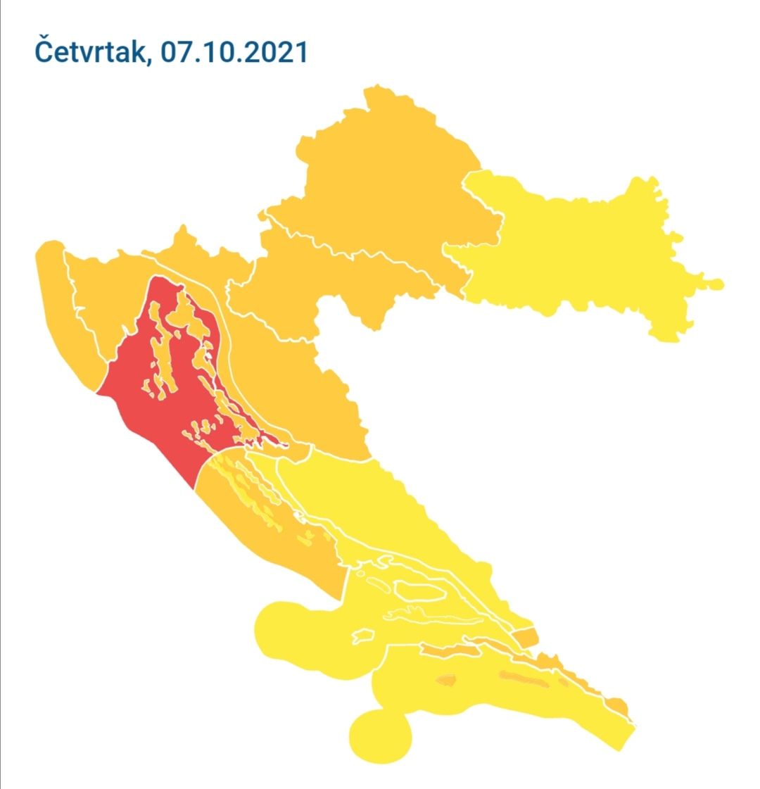 Državni hidrometeorološki zavod izdao je crveno upozorenje za Riječku regiju odnosno Kvarner i Kvarnerić.