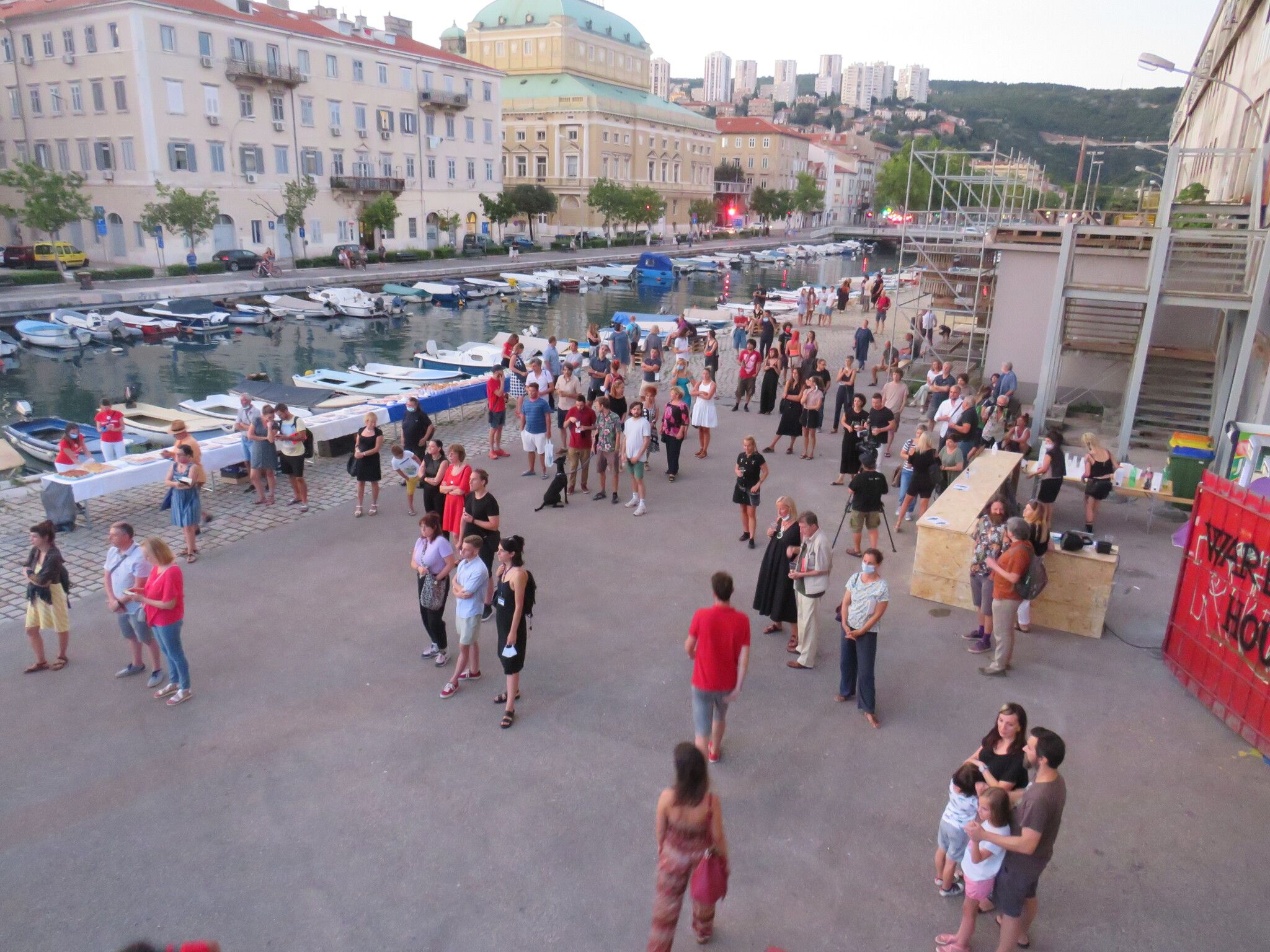Protokolarni dio otvorenja izložbe održao se ispred Exporta, otkud su publiku pozdravili predstavnica Drugog mora Ivana Katić, kustosica izložbe Inke Arns, direktorica RIJEKE 2020 Irena Kregar Šegota i zamjenik riječkog gradonačelnika Marko Filipović.