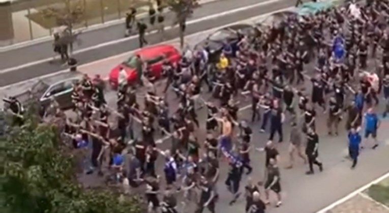 Više desetaka, moguće i stotine navijača Dinama su tijekom hoda u korteu dizali desnice i salutirali nacističkim pozdravom. Video je objavljen na više profila na Twitteru, a podijelio ga je i profil Stop Antisemitizmu te dodao da bi “ustaše bile ponosne”.
