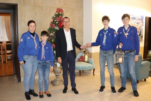 Mladi članovi Saveza izviđača Rijeke u Grad Rijeku donijeli su Betlehemsko svjetlo, simbol mira u svijetu, te ga uručili gradonačelniku Rijeke Marku Filipoviću.