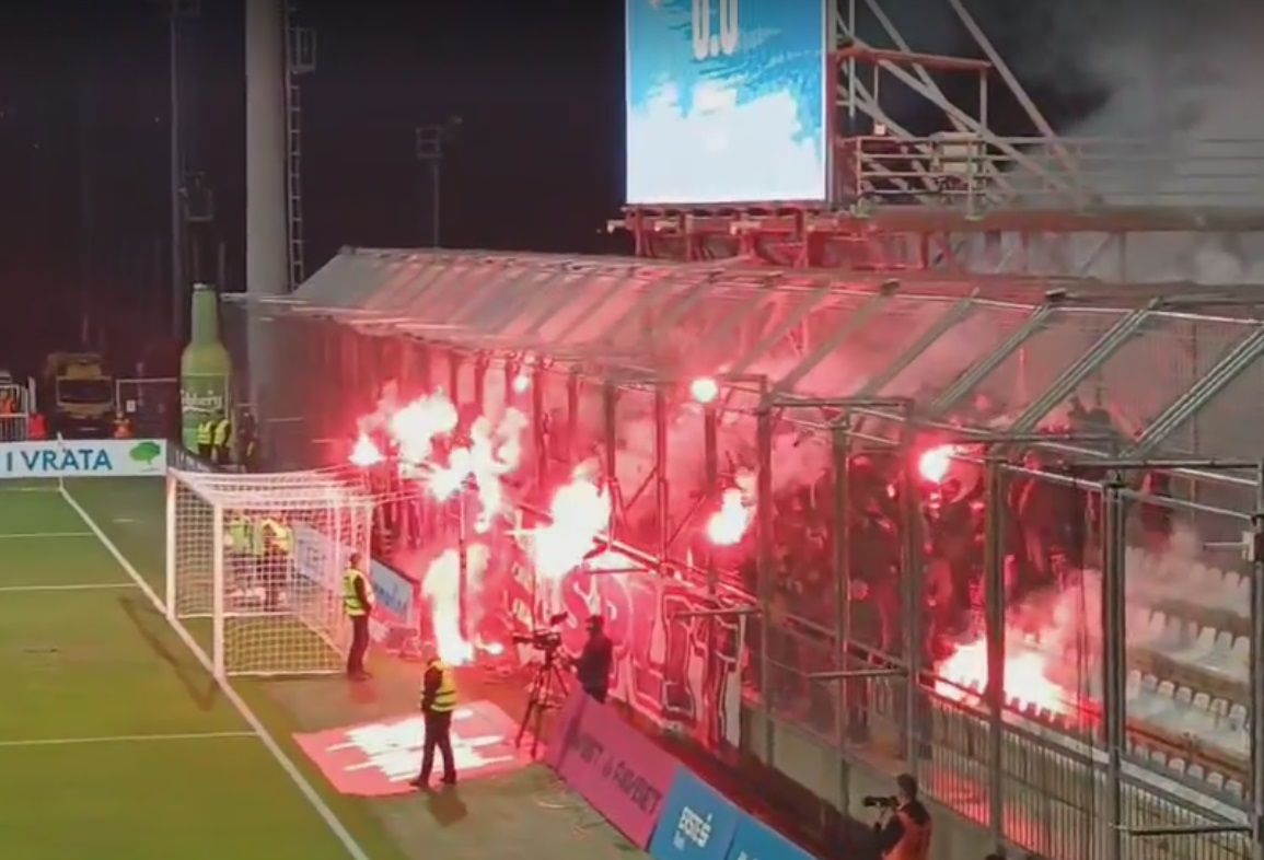 U 62. minuti utakmice prekinuta je utakmica zbog bakljade Armade.