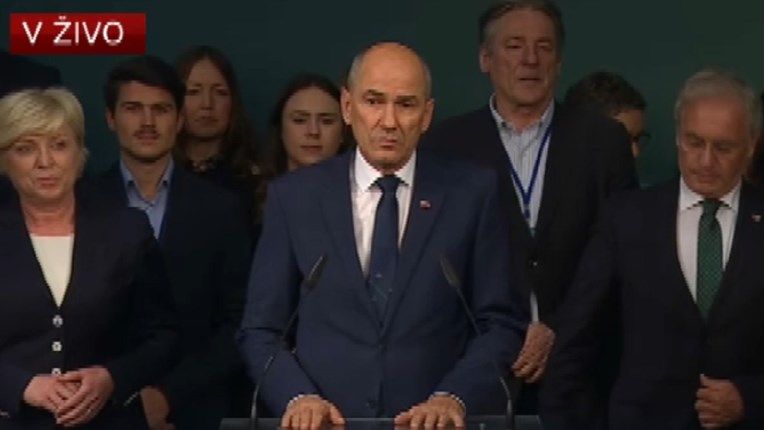 Oko 22:30 u medijski centar u Cankarjevom domu stigao je lider SDS-a Janez Janša, gubitnik današnjih izbora, i obratio se biračima. Zahvalio je svim biračima SDS-a.