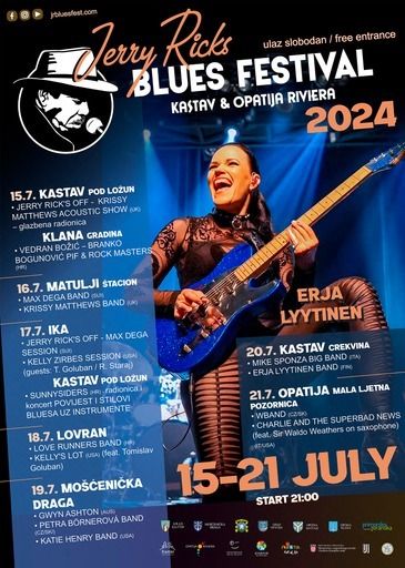 Jerry Ricks Blues Festival, najveći festival koji njeguje blues i srodne forme u ovom dijelu Europe, ponovo dolazi u Kastav i Opatiju. Pripremite se za tjedan dana vrhunske glazbe, od 15. do 21. srpnja, s više od osamnaest izvođača iz cijelog svijeta.