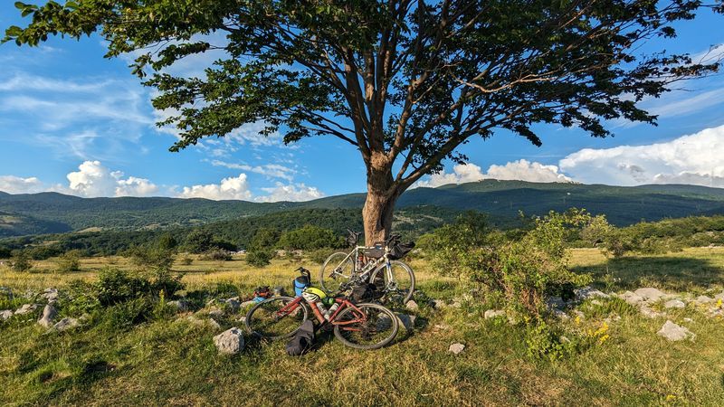 Vlak iz Rijeke za Postojnu polazi nešto prije sedam navečer i stiže malo prije 21h. Malo je kasno za večeru pri dolasku, ali mi imamo svoje rješenje za ovaj problem. Topla večera skuhana unaprijed, spakirana u velikoj posudi od jogurta umotana u flis jakni. Ovo je popraćeno s dvije dobro očišćene staklenke pesta napunjene crnim vinom za nazdravljanje i odlazak u malu avanturu. Nakon ranog početka sljedećeg jutra, slijedi dug, ali lagan uspon koji označava početak 90 km off road rute. Prolazi kroz Mašun i Sviščake, prelazi preko sada nevidljivu granicu natrag u Hrvatsku i spušta se do ceste kod Klane.