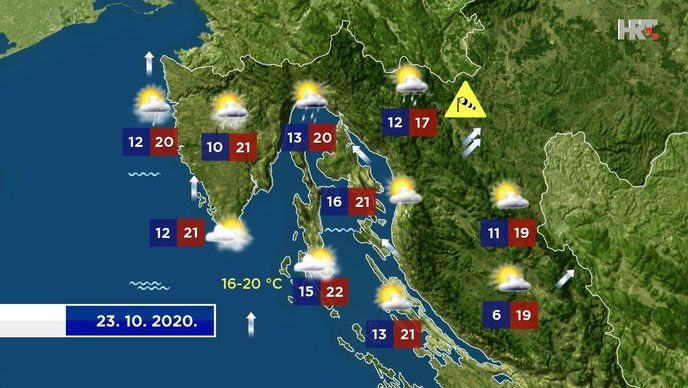 Na sjevernom Jadranu i u Gorskom kotaru povremeno više oblaka i mjestimice malo kiše. Poslijepodne i osobito prema večeri porast naoblake sa zapada. Puhat će umjeren, na zapadu u unutrašnjosti ponegdje i jak jugozapadnjak s olujnim udarima, a na Jadranu jugo i južni vjetar. Najviša dnevna temperatura zraka uglavnom između 18 i 23 Celzijevih stupnjeva.