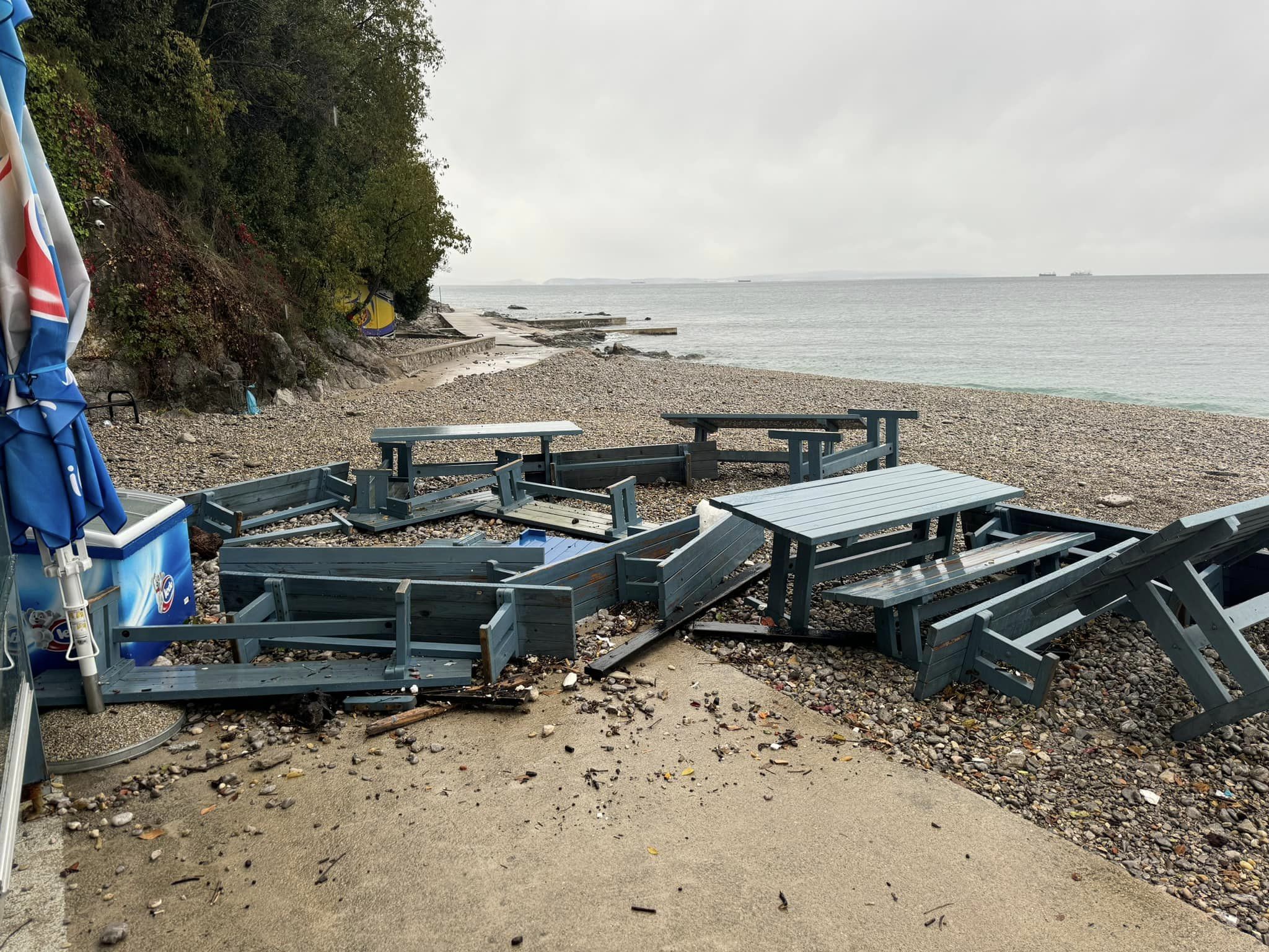 Noćaš se jugo učinilo ozbiljnu štetu na priobalnom području Kvarnera. Štetu zbraja i Morski prasac, kultni kafić blizu stadiona Kantrida koji se nalazi na samoj plaži. Prema riječima vlasnika kafića Damira Čargonje – Čarlija, ovakvi fenomeni se nisu dešavali prije 20 godina. Očito je da su klimatske promjene počele ozbiljno utjecati i na kvarnerski okoliš.