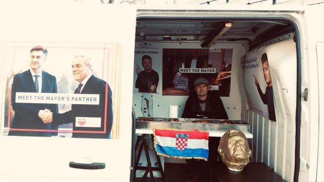 Na travnjaku ispred zgrade Zagrebačkog holdinga u Vukovarskoj ulici postavio je šatore, a sa sobom je donio i pečenu janjetinu. Janjetinu će, kaže, ponuditi građane koji ga dođu podržati, kako bi u njihovim glavama stvorio pozitivnu sugestiju vezanu uz svoj lik i djelo, javlja Telegram.