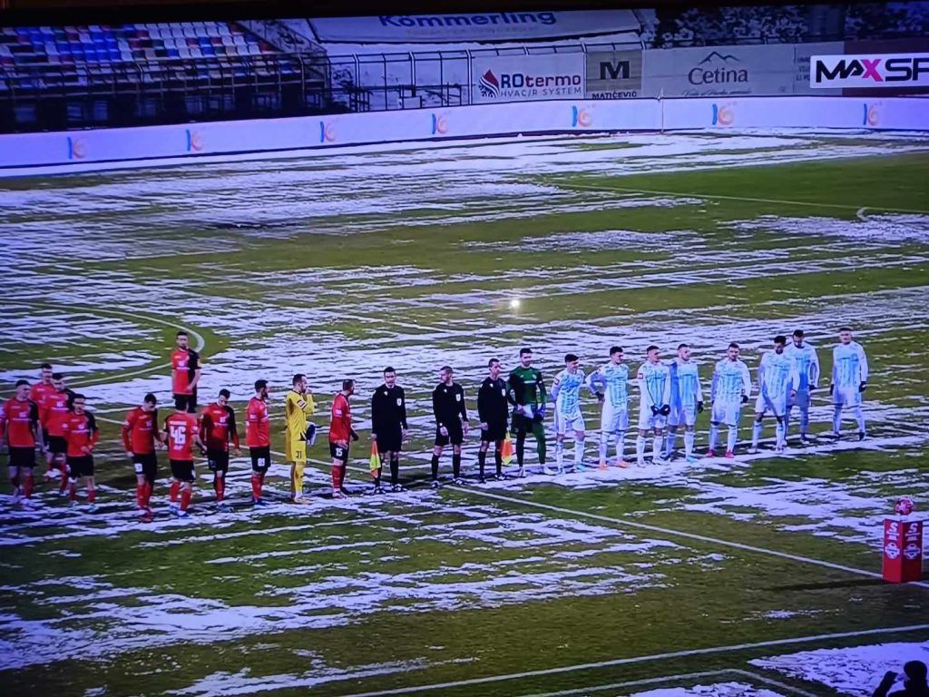 Teren na današnjoj utakmici je u većem dijelu izgledao kao klizalište s obzirom da je domaćin od snijega počistio samo šesnaesterce na obje strane terena. Uvelike je to utjecalo na igru, na sreću sve je završilo bez ozbiljnijih ozljeda igrača obje ekipe.