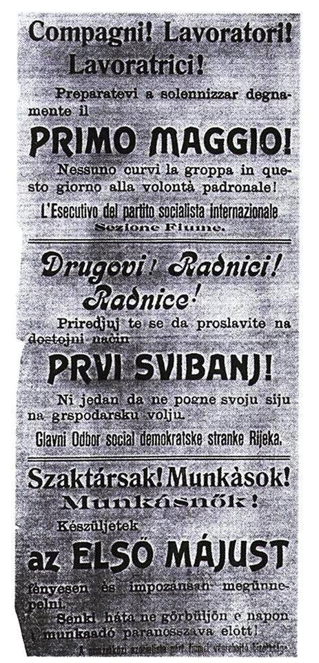 Prvi maj je sličan primjer povijesnog revizionizma u kojemu se potpuno ignorira avangardnost Rijeke u odnosu na druge hrvatske gradove. U medijima su se zadnjih godina često spominjao podatak “U Hrvatskoj se 1. maj počeo obilježavati od 1890. godine, a prva proslava organizirana je u zagrebačkom parku Maksimir”.