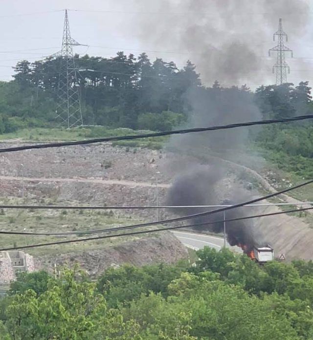 Na dionici riječke obilaznice između čvora Bakar i Križišća u blizini čvora Hreljin iza 16 sati se zapalio kamion