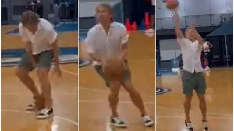 Na snimci se vidi kako Modrić uspješno dribla s košarkaškom loptom između nogu te nakon driblinga pogađa koš. Zabio je i tricu, a zatim i uspješno položio.