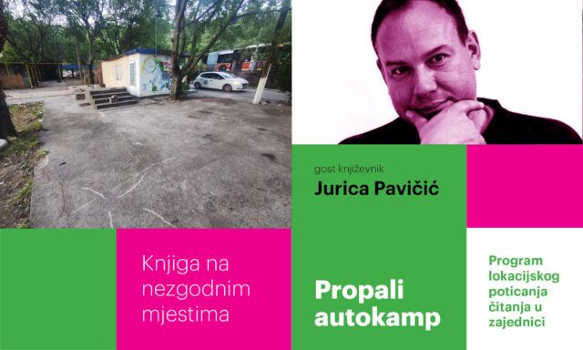 U petak 3. 9. u 19 sati na ulazu u bivši autokamp Preluk održat će se novi susret iz ciklusa Gradske knjižnice Rijeka “Knjiga na nezgodnim mjestima“, a ovoga puta druženje će činiti razgovor s poznatim splitskim književnikom i novinarom Juricom Pavičićem.