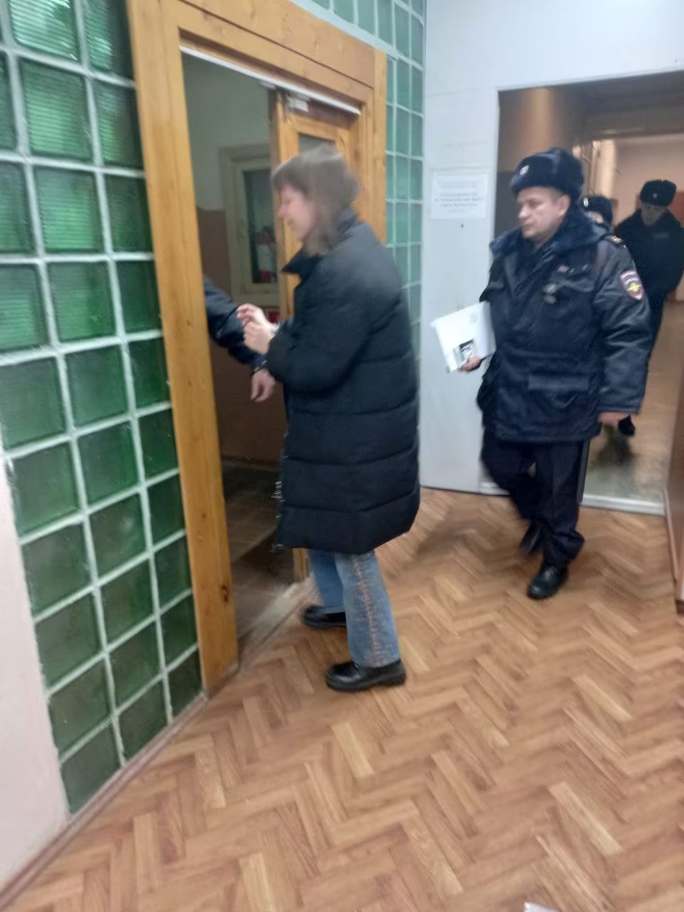 Krivtsova je privedena dva puta, prvi put krajem prosinca kada je grupa policajaca lupala na vrata stana koji je dijelila sa suprugom.