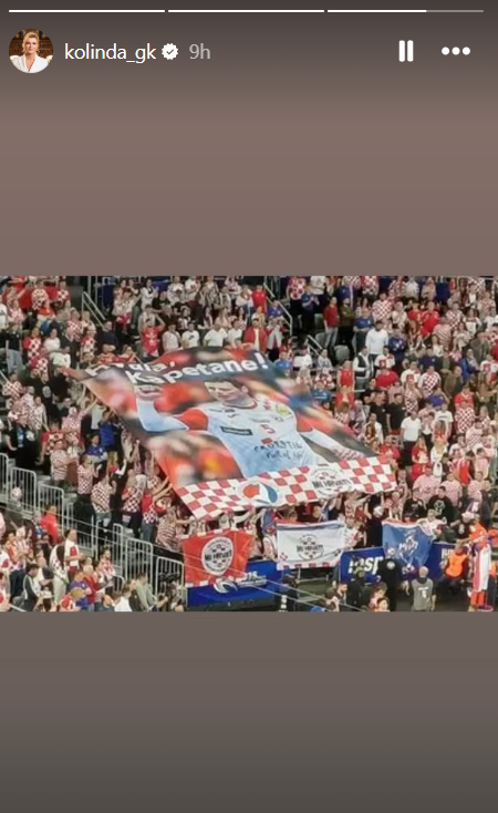 Kolinda je uz poruku objavila i fotografiju posvete Domagoju Duvnjaku s tribina.