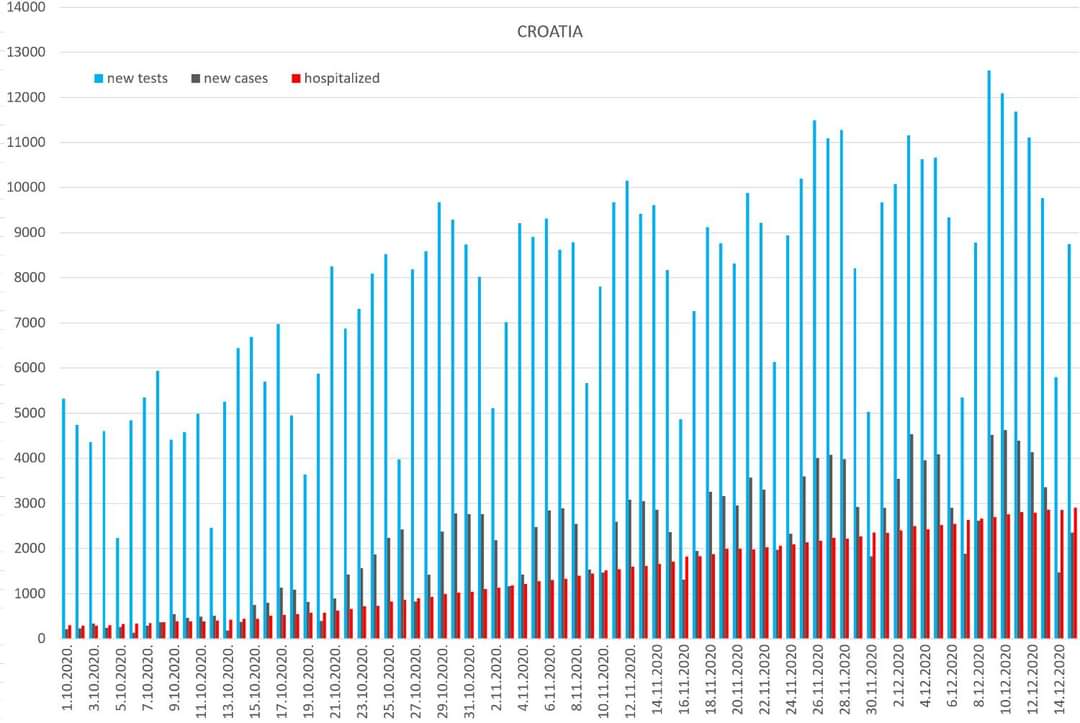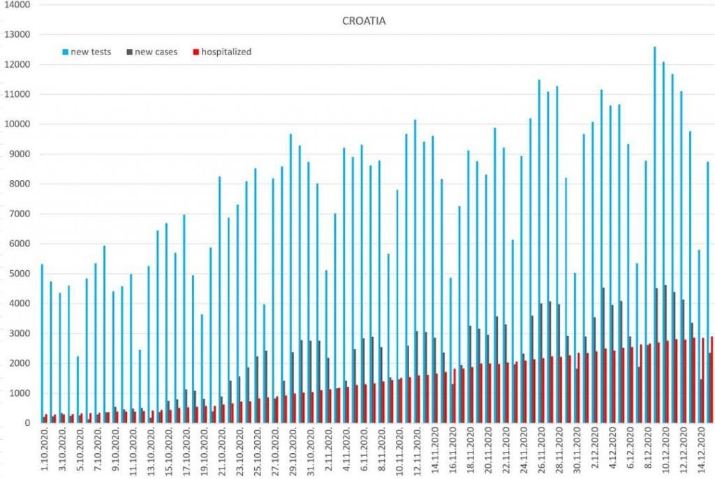 28.kolovoza ravnatelj NZJZ ‘Dr. Andrija Štampar’ je izjavio da oni mogu “obraditi 350 uzoraka dnevno nadljudskim naporima”. Prema tome još tijekom ljeta nam se raspao sustav testiranja i praćenja kontakata. Danas imamo toliko zaraženih da se u obiteljima testira samo jedan član, a ostali svi zajedno idu u izolaciju. Znači da su nam brojke 2 ili 3 puta veće od službenih brojki. Kada bi i njih pridodali dnevnim brojkama onda bi stvari bile i te kako crne. Polako se približavamo dnevnom broju od 100 mrtvih od ovog virusa. U bolnicama danas odrađujemo one koji su se zarazili prije 3 tjedna kada su nam službene brojke zaraženih bile oko 3.000. Broj od 4.000 službeno zaraženih tek se treba ovaj tjedan odraditi u bolnicama.