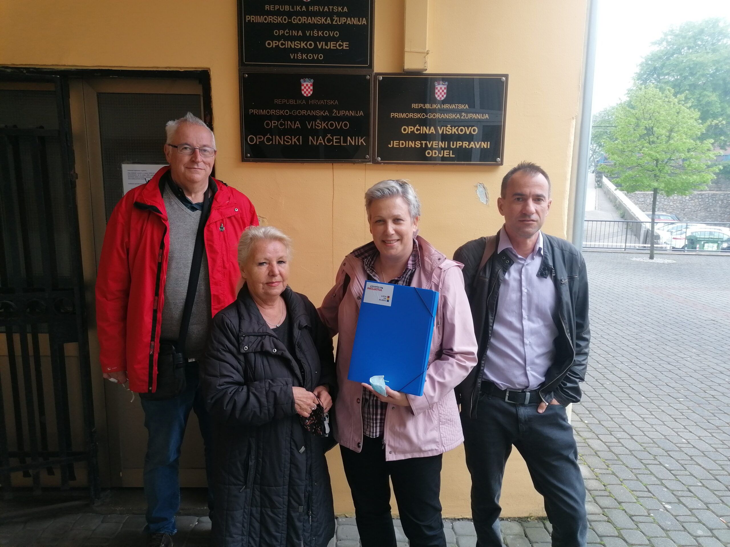Dobro raspoložene Tamara Smokvina, kandidatkinja za načelnicu Viškova, i njena zamjenica Marina Gulin, u pratnji predsjednika Liste za Rijeku Danka Švorinić i dopredsjednika Kvarnerske inicijative – regionalne platforme Zdravka Ivankovića, predale su više nego potreban broj potpisa za njihovu kandidaturu.
