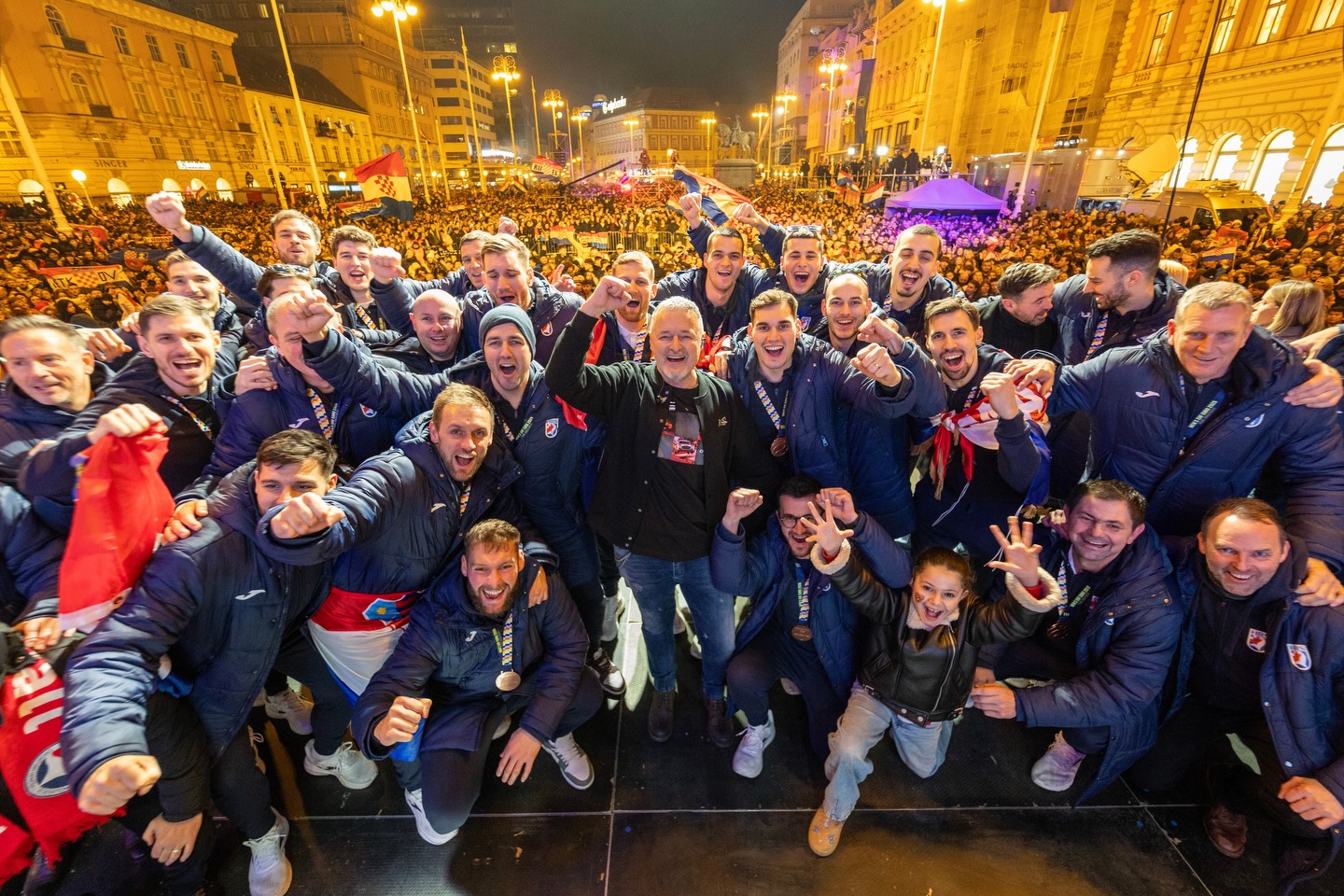 Tisuće navijača dočekalo je sinoć na Trg bana Josipa Jelačića hrvatske rukometaše nakon osvajanja brončane medalje na Europsko rukometno prvenstvo. Slavlje u središtu Zagreba brzo je poprimilo i snažnu glazbenu, ali i političku dimenziju.