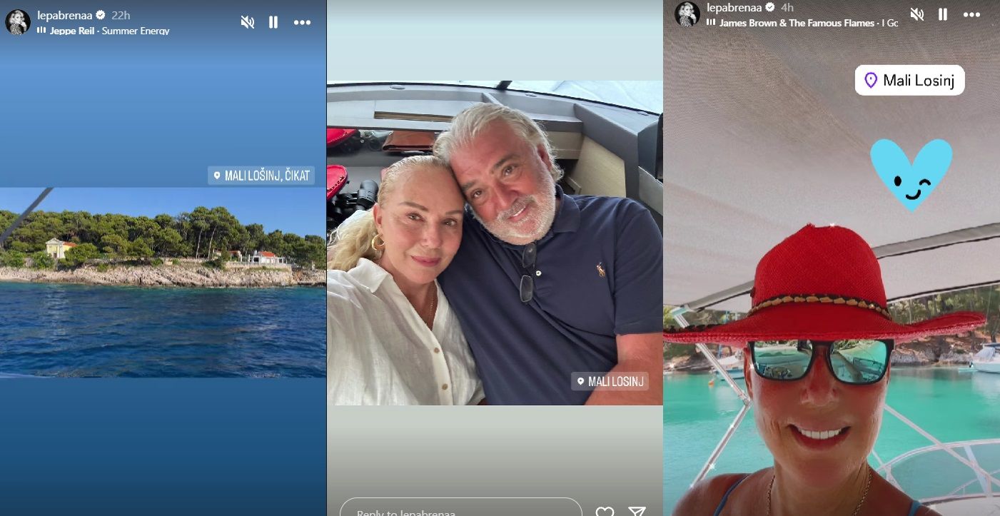 Popularna pjevačica Lepa Brena i njen suprug Slobodan Boba Živojinović trenutno uživaju na odmoru u Hrvatskoj. Na svom Instagram profilu, Brena je podijelila fotografije i snimke iz prekrasnog Malog Lošinja, točnije iz Čikata. Obožavatelji su imali priliku vidjeti mirno more i selfie sretnog para.