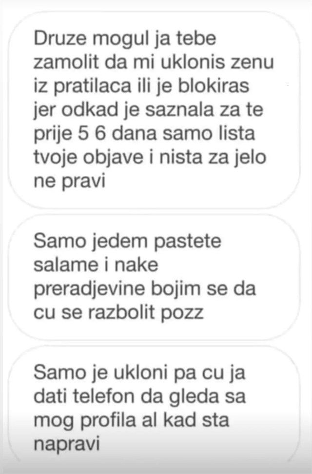 Priča o mužu koji je kreativno pristupio problemu prevelikog korištenja društvenih mreža svoje supruge postala je pravi hit na internetu. Naime, žena je postala toliko opsjednuta svojim omiljenim influencerima da je provodila gotovo sve slobodno vrijeme skrolajući po društvenim mrežama. U trenutku frustracije, muž je došao na genijalnu i pomalo komičnu ideju – odlučio je stupiti u kontakt s jednim od njezinih najdražih influencera i zamoliti ga za neobičnu uslugu. Njihovo dopisivanje je nešto najsmješnije što ćete danas pročitati!