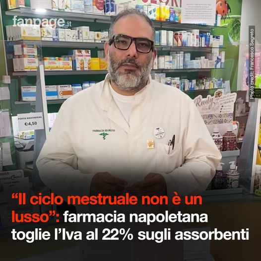 Ovih dana u Italiji je veliku medijsku pozornost dobio Francesco Segreto, vlasnik napuljske ljekarne u četvrti Vomero, u ulici Belvedere, koji je pokrenuo malu revoluciju i hvalevrijednu inicijativu: u videozapisu koji je objavio na Facebooku objasnio je svojim kupcima da će počevši od ovog tjedna ukloniti 22 posto PDV-a za sve proizvode higijenskih uložaka koji se prodaju u njegovoj ljekarni. Kako će to učiniti? Očito će tu razliku u cijeni morati namiriti iz vlastitog džepa. Ali kupci će imati popust jednak uobičajenom iznosu PDV-a na proizvod, odnosno 22%.