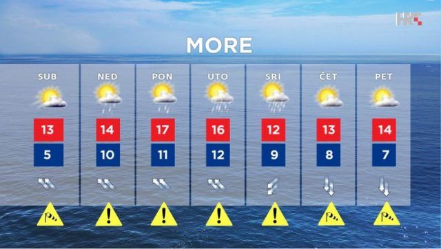 Na Jadranu idući dani vjetroviti, u početku jako i olujno jugo, a od srijede duž većeg dijela obale bura i sjeverni vjetar. U skladu s tim do srijede će biti i kišovito, često i uz obilniju kišu odnosno jake pljuskove praćene grmljavinom, posebno u utorak, a u srijedu još u Dalmaciji. Od četvrtka raste vjerojatnost za stabilnije vrijeme.”, prognozirala je za HRT dr. sc. Tanja Renko iz DHMZ-a.