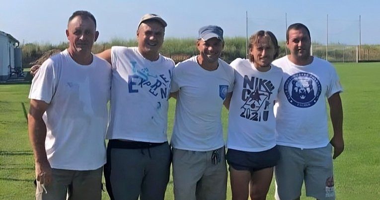 Modrić je na nogometnom igralištu pozirao s lokalnim komunalcima.