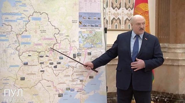 Kako javlja dopisnik Financial Timesa Max Seddon, iza Lukašenka se nalazila mapa s metama napada, planiranim kretanjem trupa i zemljom podijeljenom na četiri dijela.