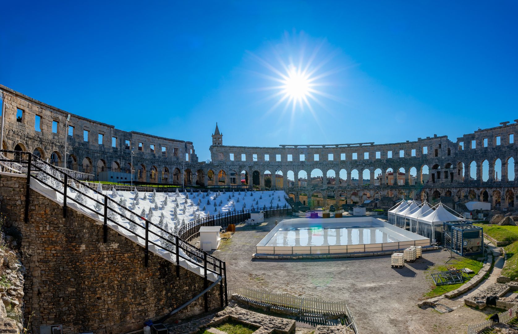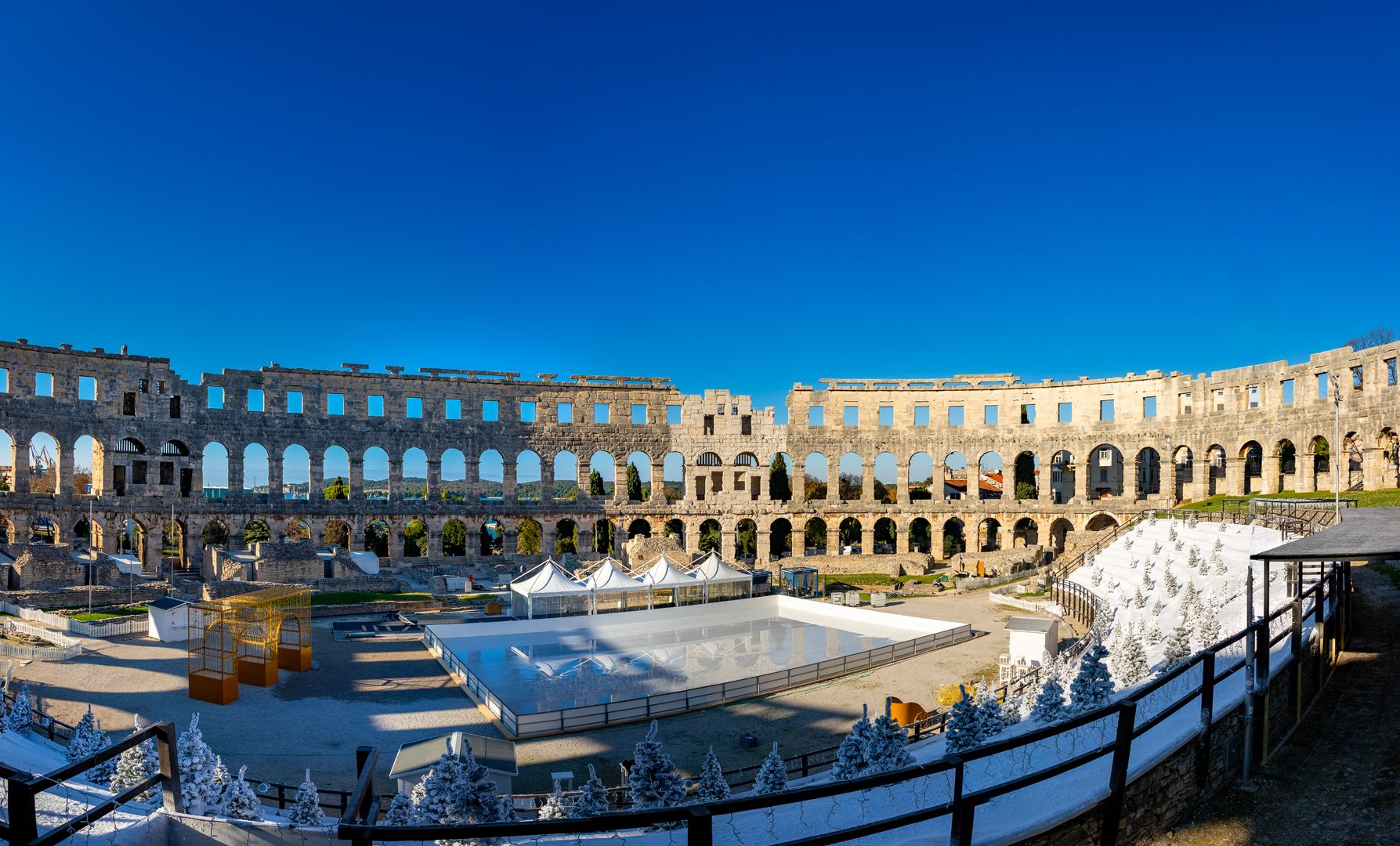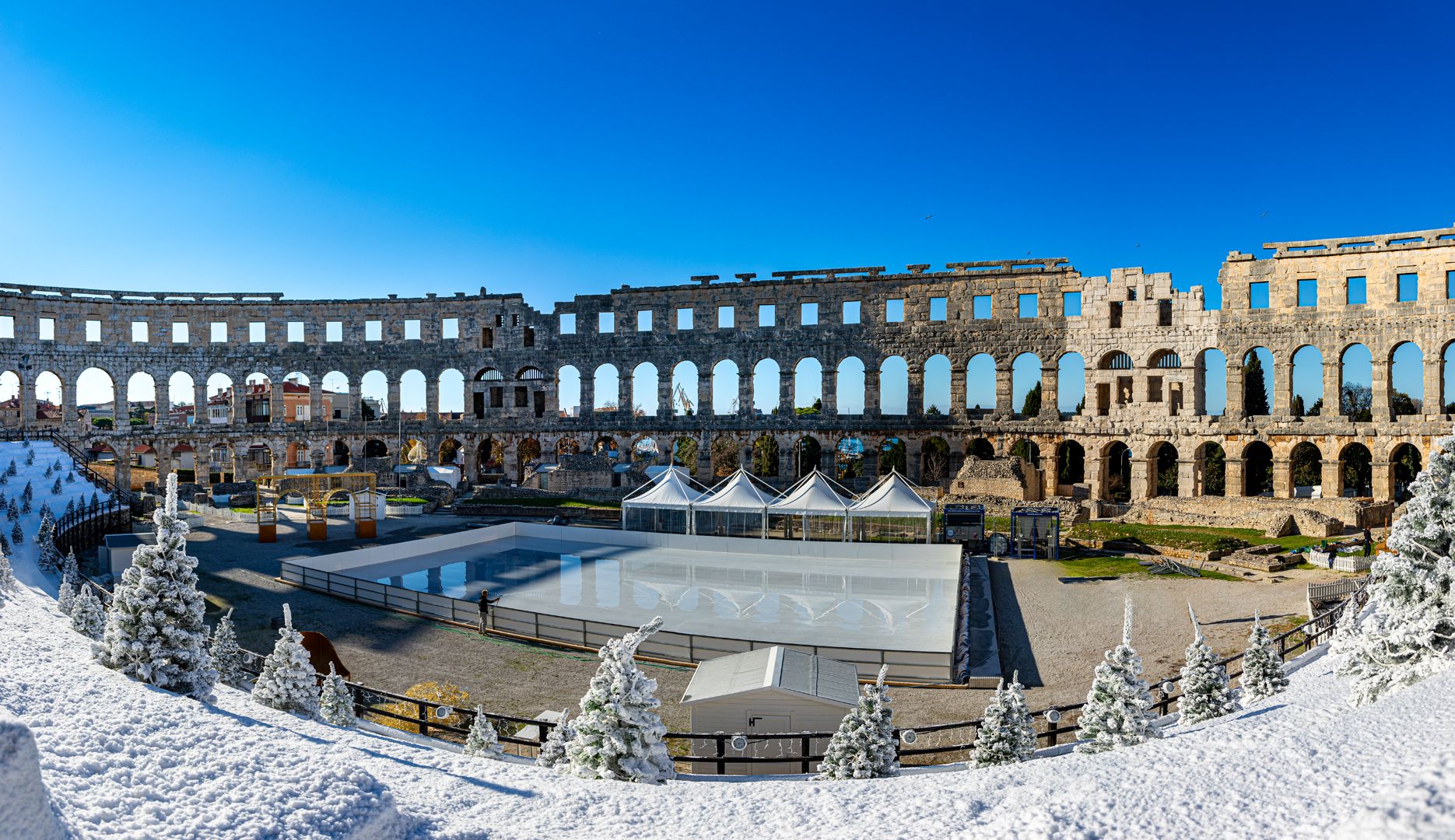 U samom središtu Arene smjestilo se impresivno klizalište površine 600 m² s pratećom infrastrukturom, kojim će upravljati tvrtka Arctic d.o.o. Ovo klizalište, okruženo dekoracijama inspiriranim rimskom arhitekturom, postat će središnje mjesto božićne čarolije. Autori projekta iz Inspiro Laba osmislili su stilizirane arkade dužine 8 metara koje simboliziraju hommage antičkom graditeljstvu.