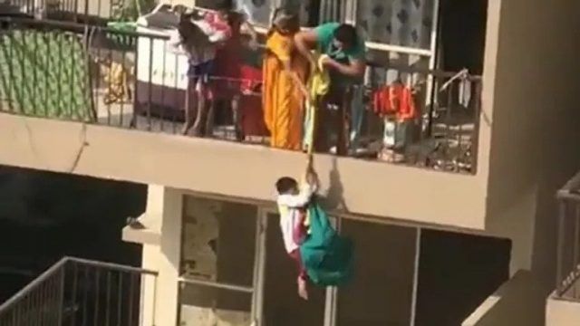 Mother dangles son by #saree from 10th floor to fetch fallen clothes. #location– #Faridabad#Viral #Trending#Haryana #saree pic.twitter.com/BgPIvzHyz8