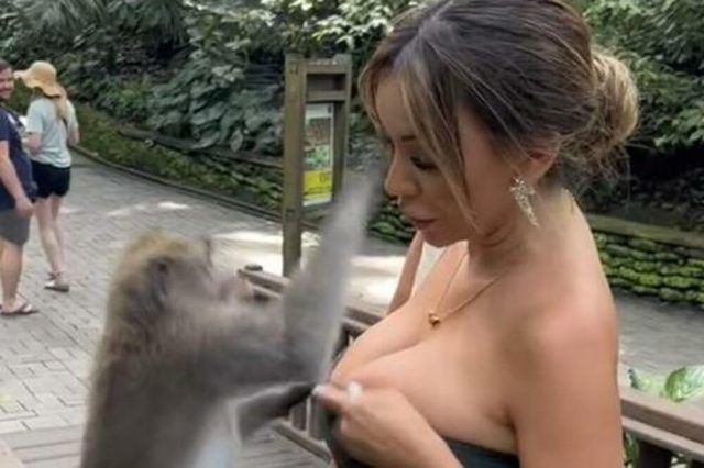 Svoj 29. rođendan odlučila je proslaviti na odmoru, ne sluteći da će dva milijuna ljudi zahvaljujući majmunu uživati u izravnom pogledu na njezino bujno poprsje.