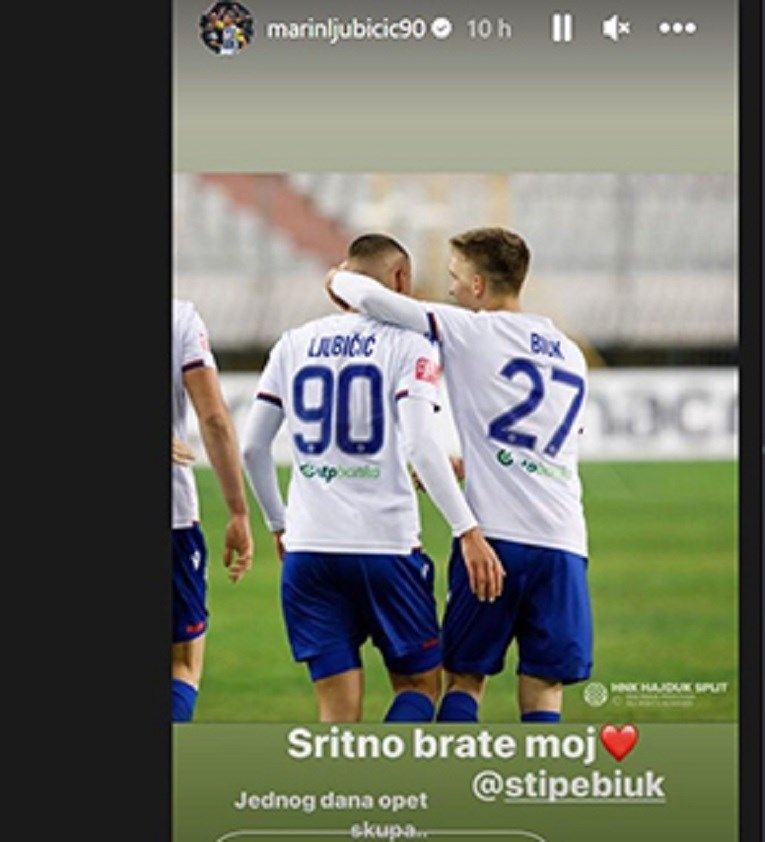 Ljubičić i Biuk su generacija i veliki prijatelji, koji su zajedno prošli sve kategorije u Hajduku. I onda kada su trebali postati nositelji igre, prodani su. Ljubičić, koji je još ljetos otišao u Linz na posudbu, komentirao je Biukov odlazak u LA. “Sritno, brate moj. Jednog dana opet skupa”, napisao je uz zajedničku fotografiju dvojca u dresu Hajduka.