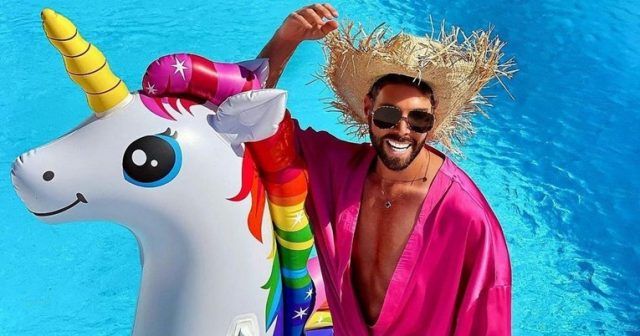 Marko Grubnić objavio je na svom Instagram profilu novu fotku s bazena, na kojoj ga se može vidjeti kako pluta na površini vode sjedeći na luftiću u obliku jednoroga s grivom duginih boja.