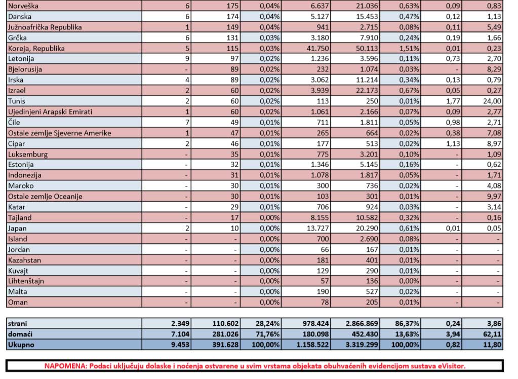 Također, u dokumentu koji je objavio HTZ piše kako u travnju iz nekih zemalja nije došao niti jedan turist, ali su ipak ostvarili noćenja.