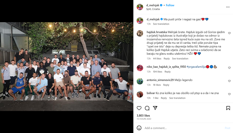 Livajin suigrač i Hajdukov bočni igrač Dario Melnjak ubrzo je objavio istu fotografiju uz rečenicu: “Ma pusti priče i nagazi na gas!” Podsjetimo, posljednjih dana po Splitu se priča kako je Livaja nakon dva uzastopna poraza imao sukobe s nekoliko suigrača na treninzima i u svlačionici.