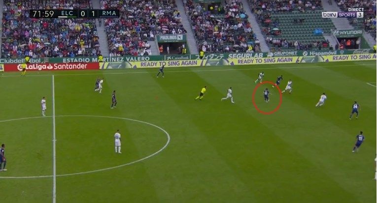 Kapetan Hrvatske je pri vodstvu njegove momčadi 1:0 u 73. minuti na 30 metara od gola s lijeve strane loptu smirio desnicom i odmah je ljevicom odigrao u prostor za natrčalog Viniciusa.