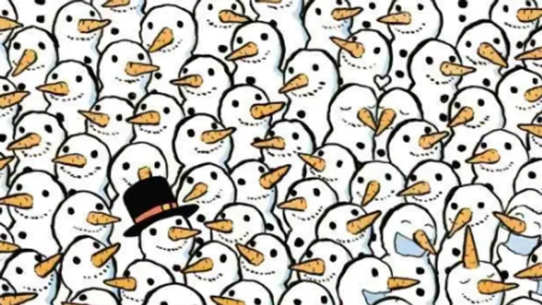 Na ilustraciji se nalazi mnoštvo snjegovića, svaki s različitim izrazima lica i dodacima. No, među njima se krije polarni medvjedić, koji se vješto kamuflirao i čini se gotovo neprimjetnim.